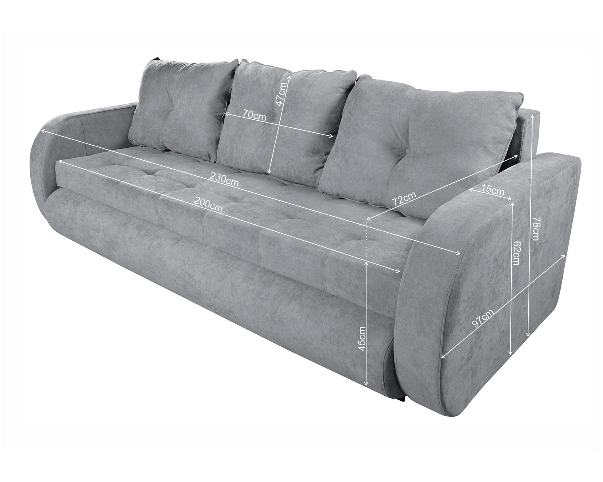 Pe langa aspectul atractiv, canapeaua Siena prezinta multe alte avantaje cum ar fi mecanismul de extensie, in cateva minute se obtine un pat incapator cu o suprafata de dormit de 138 x 200 x 45 cm. Aspectul neutru si culoarea uni sunt combinate pentru a crea o unitate vizuala puternica. Marginile rotunjite, dimensiunea optima si postura lejera o fac usor de amplasat in diferite spatii de interior cum ar fi dormitor, living sau chiar birouri. Structura canapelei ofera rezistenta si durabilitate, iar suprafata de dormit generoasa este un atu, la fel ca si lada de depozitare, detalii importante in alegerea canapelei. Lada de depozitare incapatoare si usor de manevrat, ajuta la pastrarea si organizarea diferitelor accesorii (stocarea pernelor sau a lenjeriilor de pat), contribuind in mod practic la imbunatatirea spatiului ambiental. Canapeaua este facuta din materiale de calitate superioara. Pernele sunt incluse.