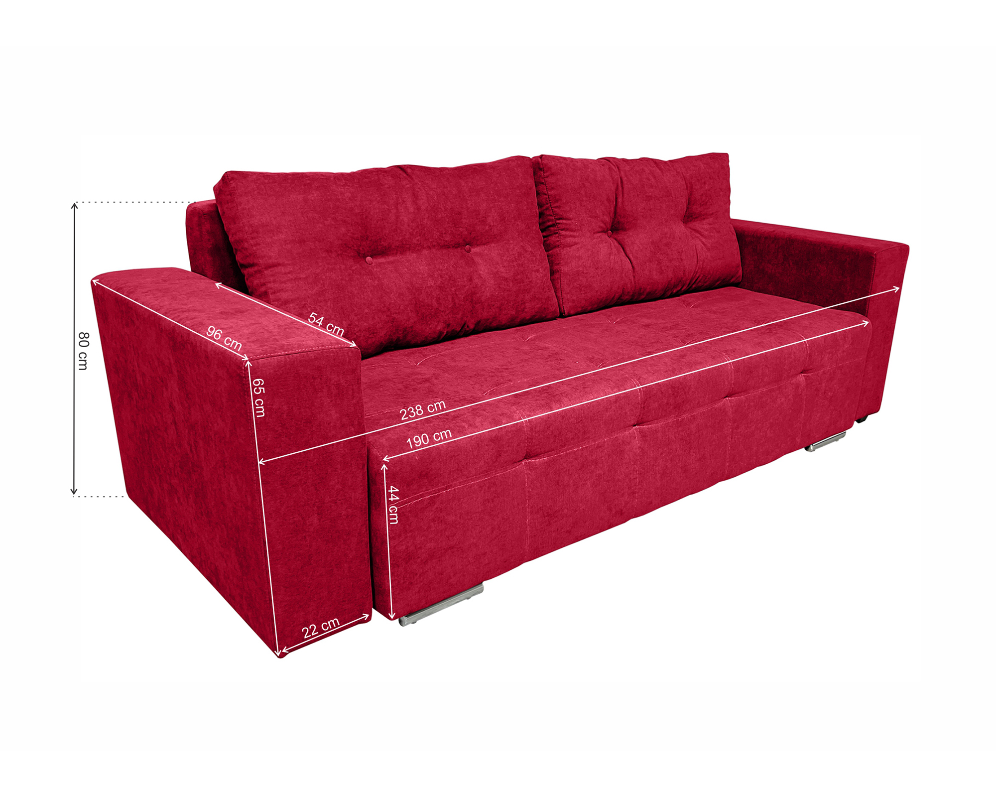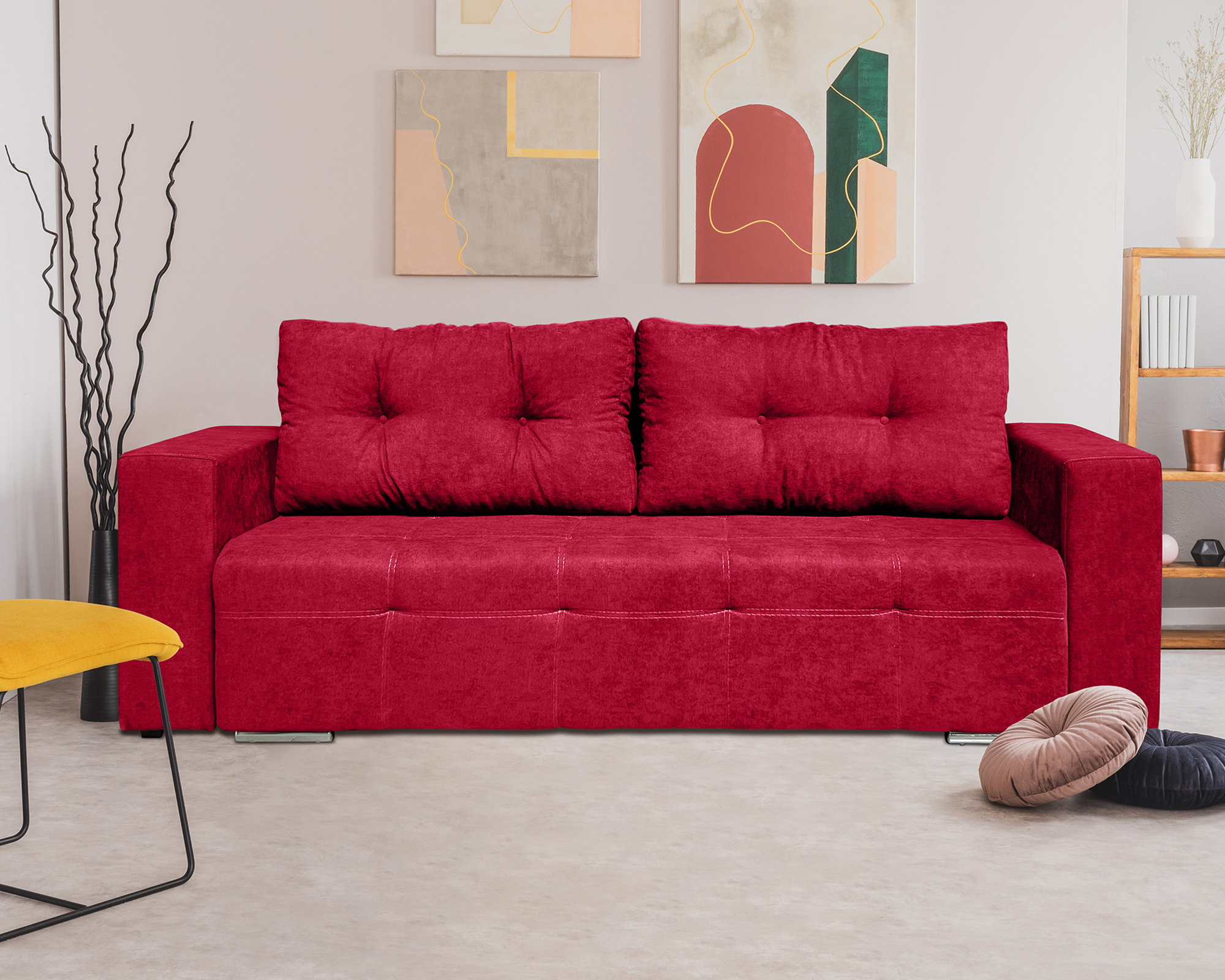 Canapea Extensibila Bedora Venice, 3 locuri, cu lada de depozitare, textil, rosu