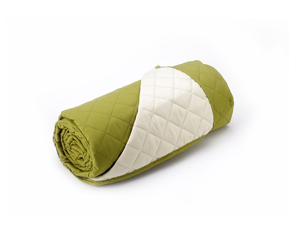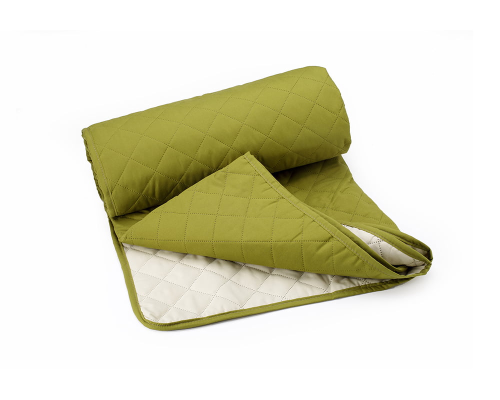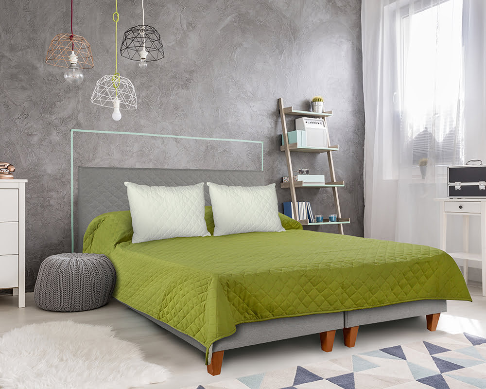 Cuvertura de pat atractiva este un accesoriu cu stil si practic pentru orice dormitor. Cuvertura protejeaza lenjeria de pat impotriva decolorarii si a prafului omniprezent si in plus, patul va fi aranjat imediat. Cuvertura de pat Double Face in doua nuante total diferite: una pastel olive, una verde olive pot modifica aspectul intregii camera. Este ideala pentru orice dormitor. Cuvertura este captusita cu un strat delicat de fibra siliconica pentru un plus de caldura si confort. Antialergica.