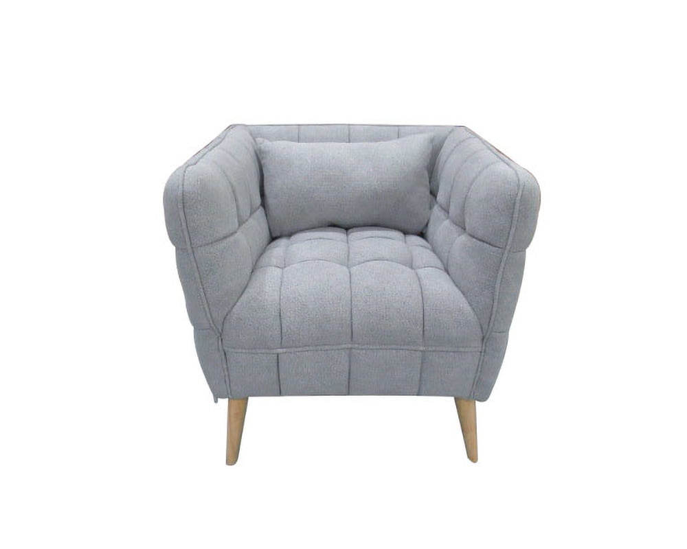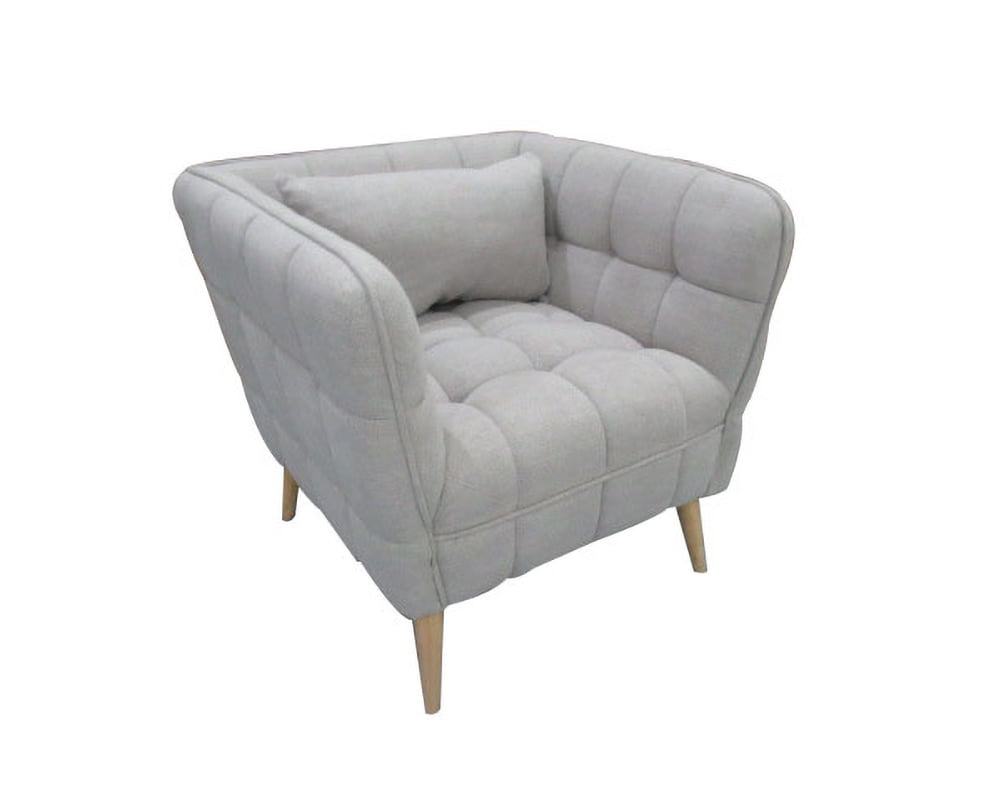 Fotoliul elegant imbina stilul si confortul, adauga o nota de eleganta mereu la moda decorului dvs. interior. Fotoliul creeaza locul perfect pentru a viziona un film, pentru a citi o carte sau pur si simplu pentru a va relaxa! Sofa cadru lemn tapițată cu textil mix de vâscoză / pânză / bumbac, 1 pernă, picioare din lemn natur. Culoare gri deschis. Dimensiuni 75,5*72,5*70,5