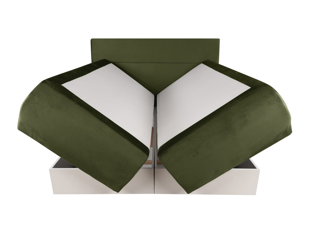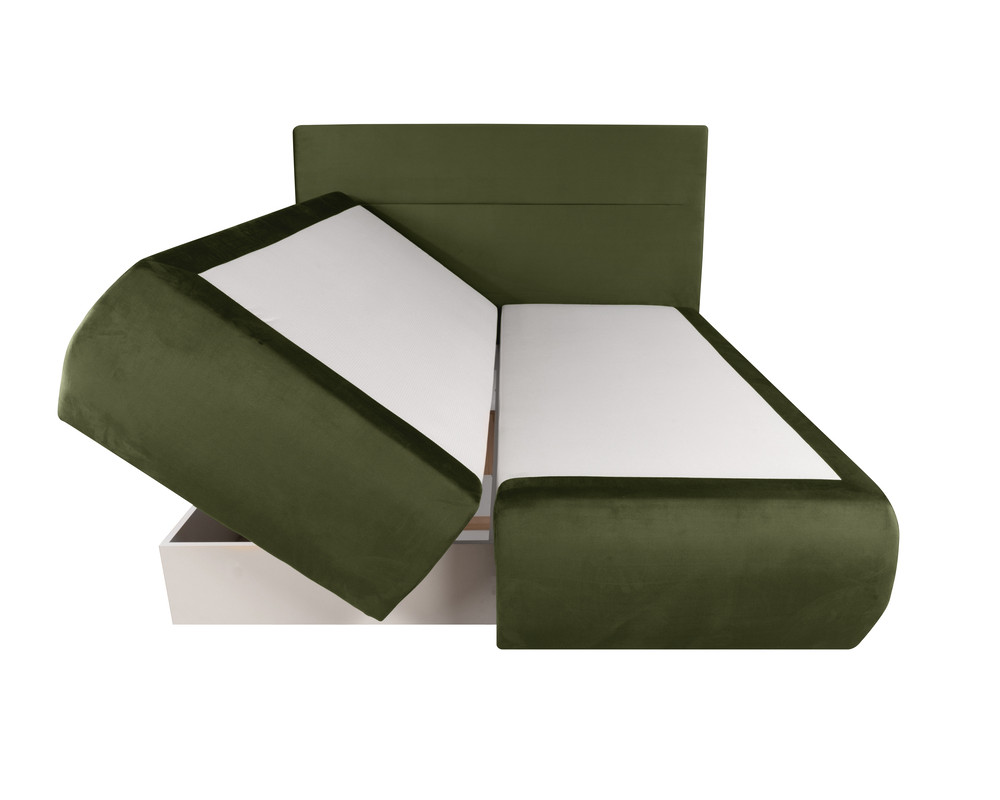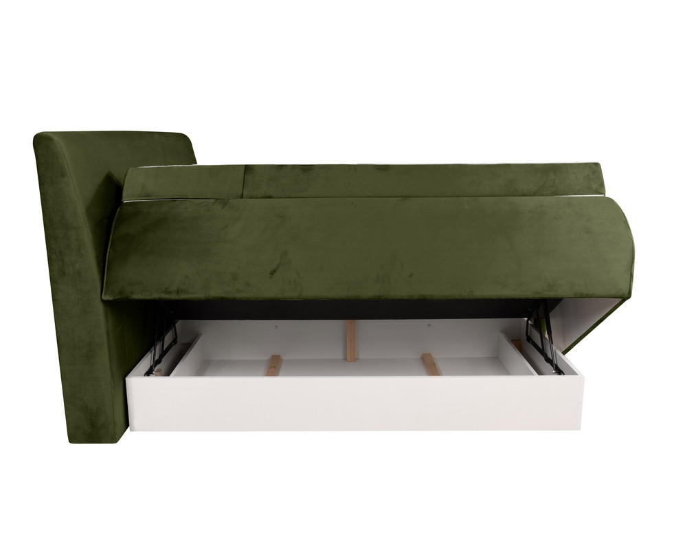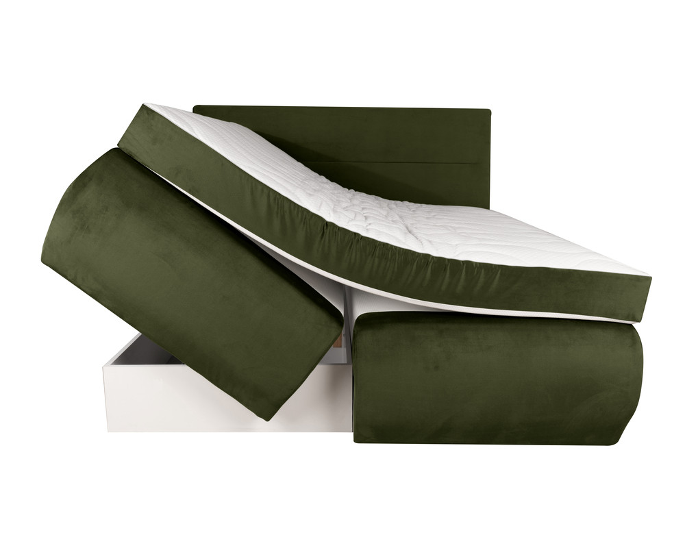Pat Dormitor Bedora Leon Spring, 160×200 cm, lada de depozitare, textil, verde