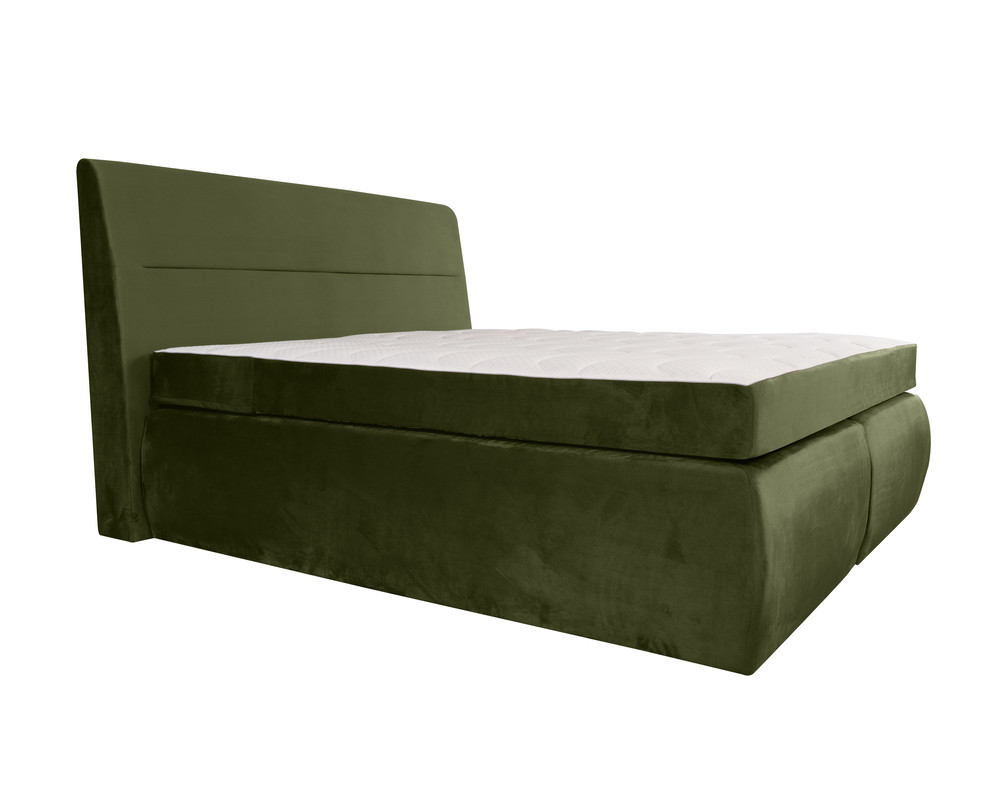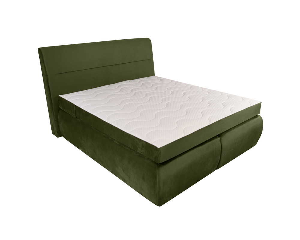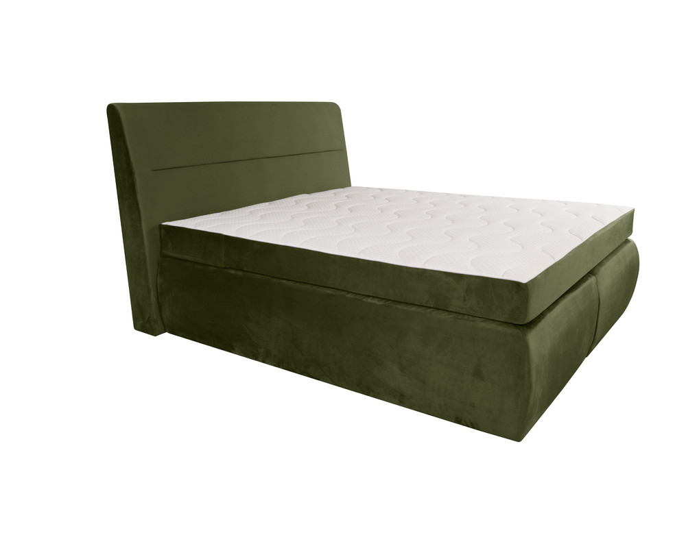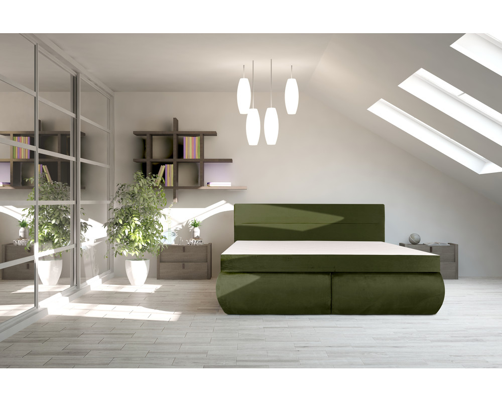 Pat Dormitor Bedora Leon Spring, 160×200 cm, lada de depozitare, textil, verde