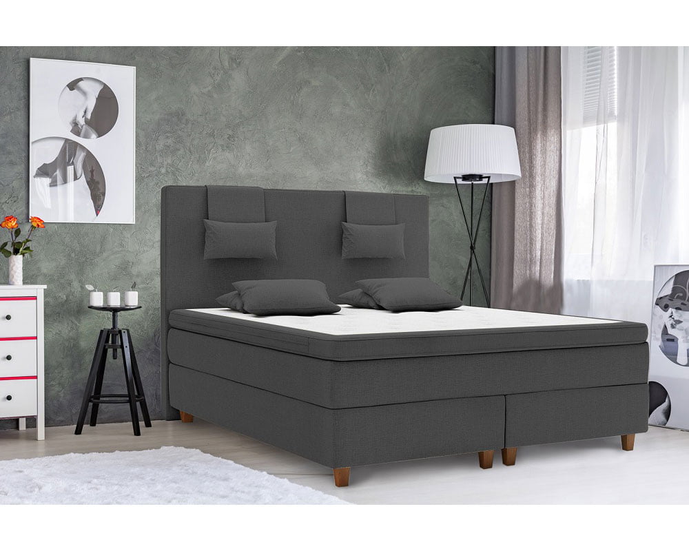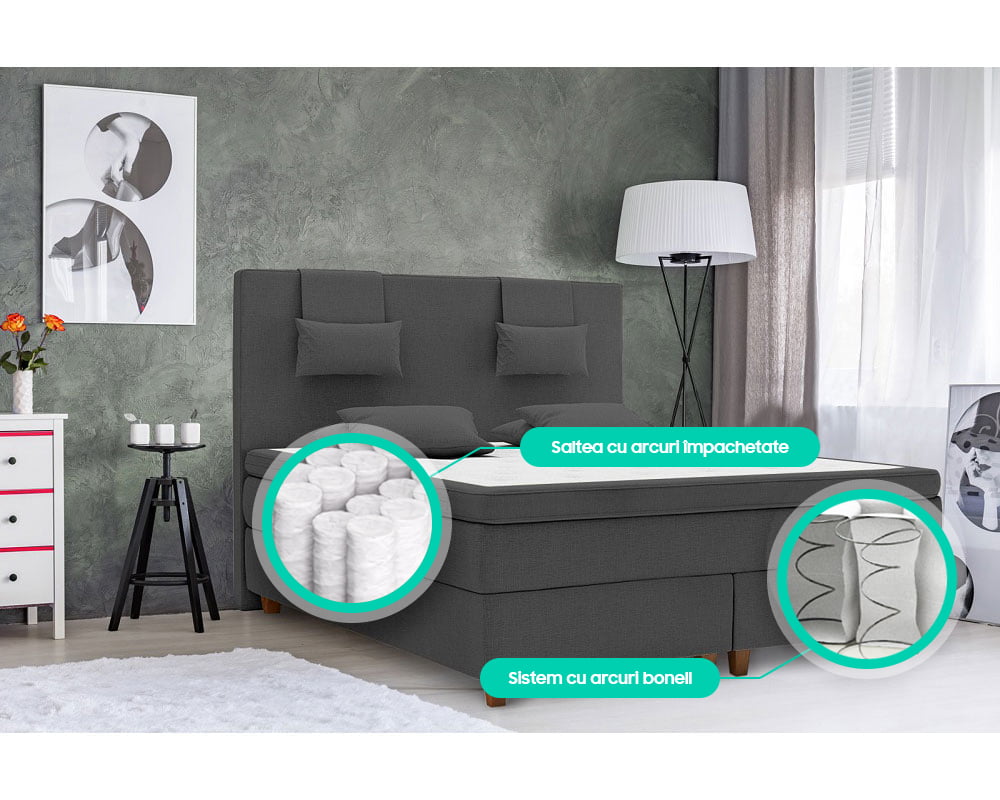 Pat Dormitor Matrimonial Green Future Liding Boxspring Gri Inchis 180×200 cm, pachet, stofa, fara lada de depozitare