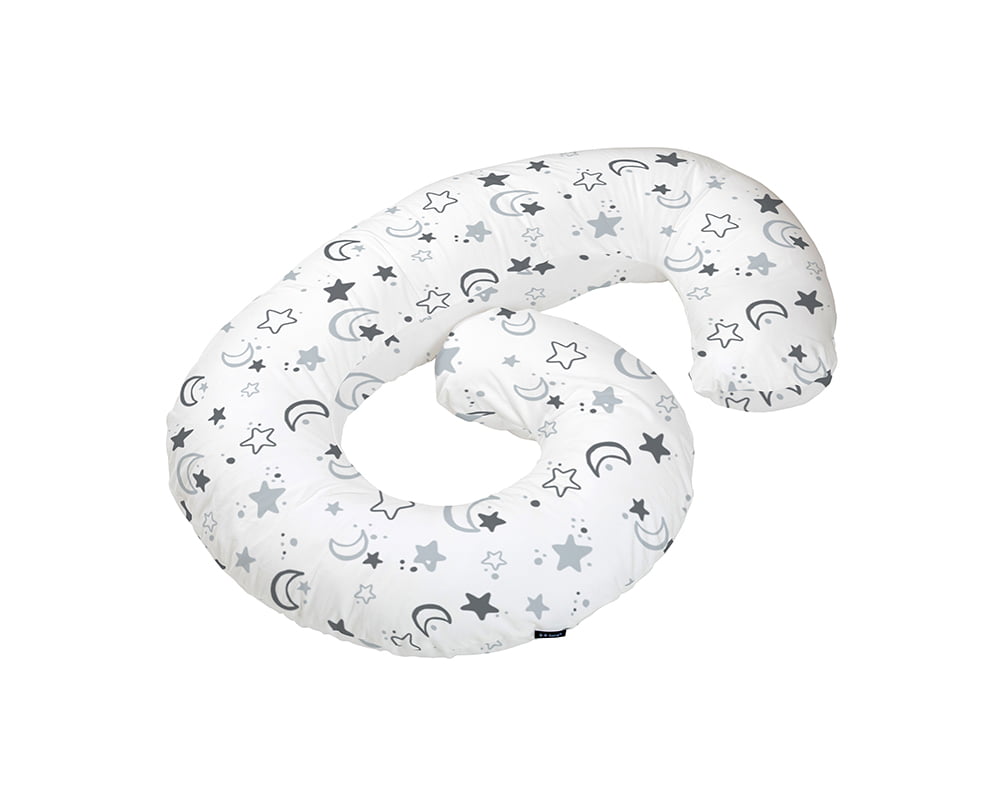 Perna Gravide Bebeluca Night, fibre siliconice, husa microfibra detasabila, lavabila, alb cu model