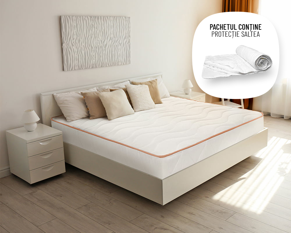 Joaca un rol important in mentinerea pozitiei corecte a corpului in timpul somnului oferand 2 elemente cheie, respectiv: confort si suport. Straturile din interiorul saltelei ajuta la evitarea presiunii asupra muschilor, oaselor si ligamentelor, factori cheie pentru un somn sanatos. Este o saltea recomandata pentru toate pozitiile de dormit: pe spate, pe lateral si pe stomac. Se poate folosi pe ambele fete. Greutate recomandata: 100 kg/ persoana. Pachetul contine si o protectie saltea de marimea corespunzatoare!