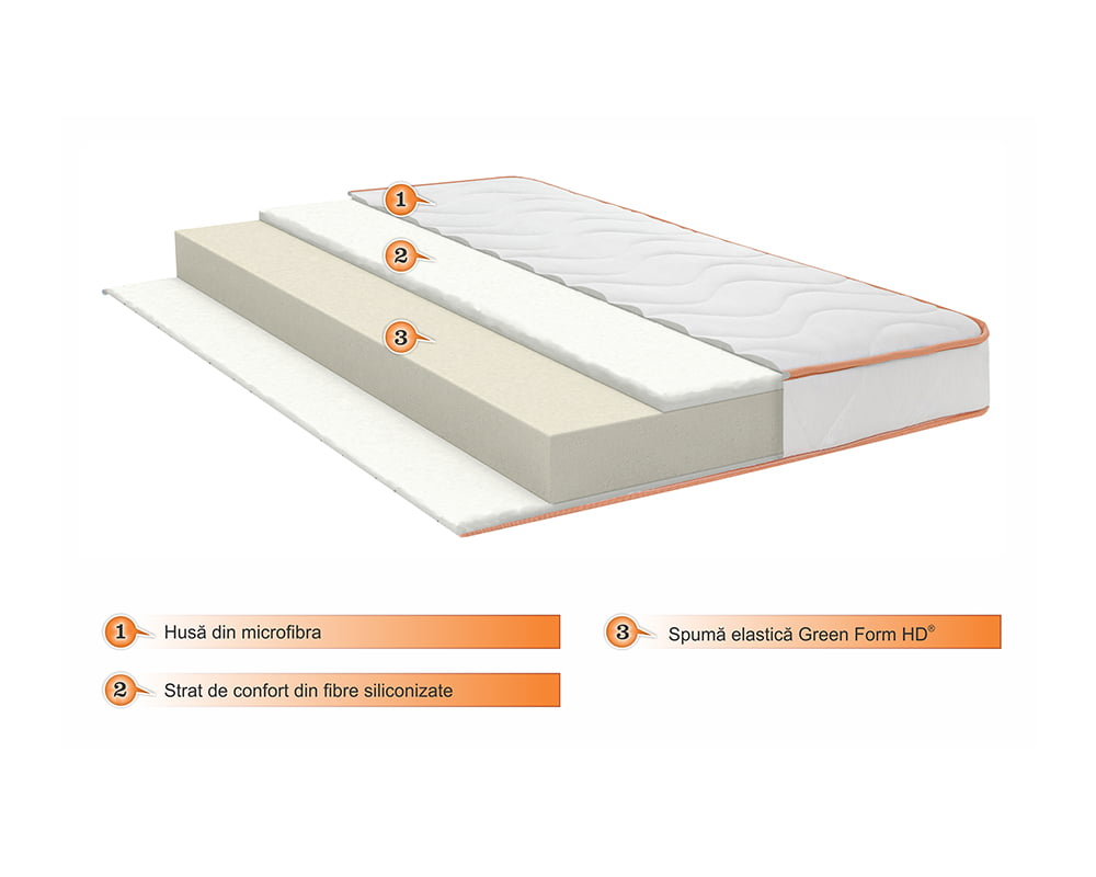 Saltea Ortopedica Green Future Orange Line Pachet 160×200 cm, medie/tare, 18 cm, husa antialergica