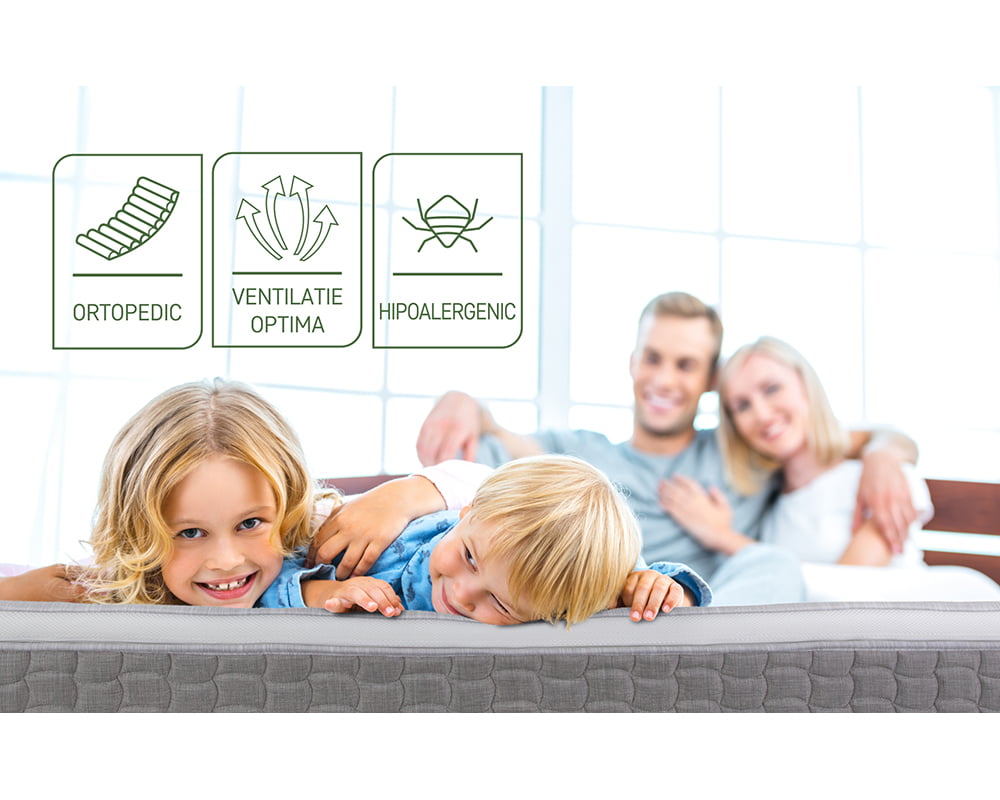 Aceasta saltea ofera ventilatie optima prin sistemul de perforatii 3D Free Air® pentru aerisire corespunzatoare si mentinerea unui mediu uscat in timpul somnului, impiedicand astfel formarea bacteriilor si a ciupercilor, principalii factori in dezvoltarea alergiilor.