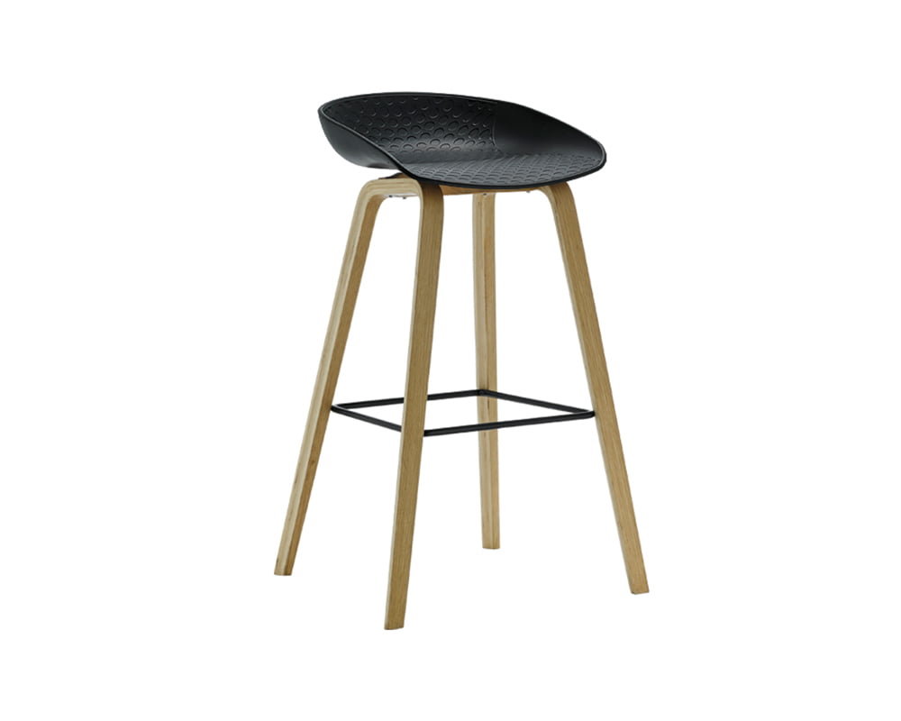 Scaun cu un design elegant si mereu la moda, fiind un element de decor atragator atat indoor cat si outdoor. Scaun cu sezut si spatar din polimer, picioare din lemn masiv culoare natur, cadru metal. Culoare sezut: negru. Dimensiuni 42.5*50*85.