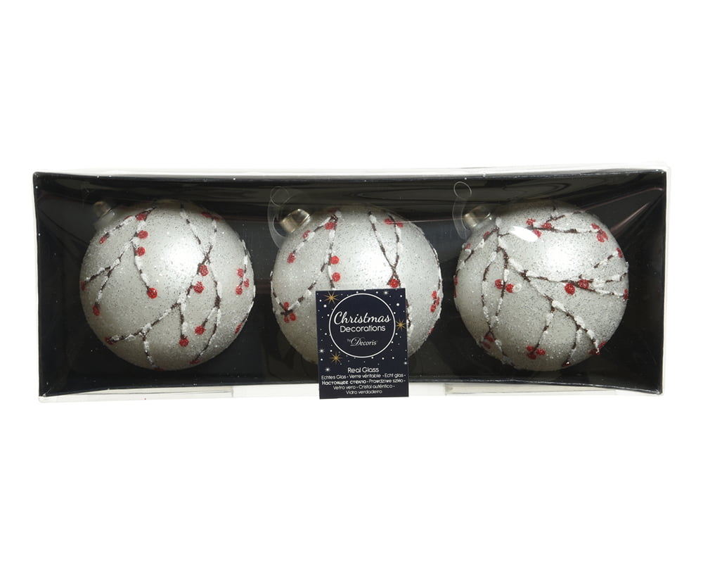 Set 3 Globuri Bauble Decoris, 8cm, sticla, alb