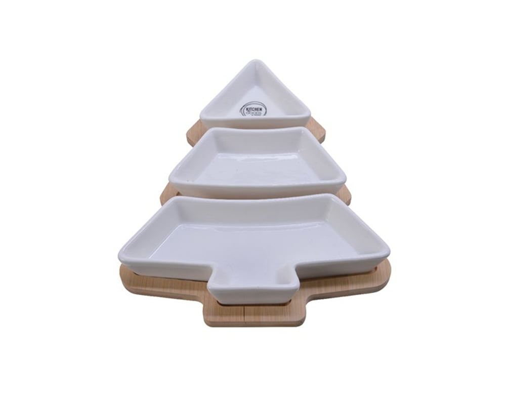 Set Tocator si 3 Boluri Tree Decoris, bambus/gresie, alb/bej